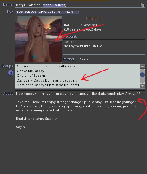 [REDACTED]DENYHer look in Sl, not her profile picture, is even younger, total underage player, 19 my bottom. I agree her groups are the template for her look
